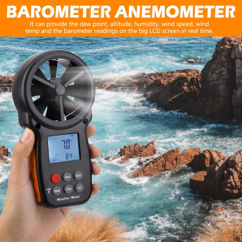 - More functions than other anemometers: LC-100-WM not only has the functions of ordinary anemometers, such as B. Measure wind speed, wind temperature, wind chill indicators, but also a professional barometer that can measure relative humidity, dew point and air pressure and altitude.