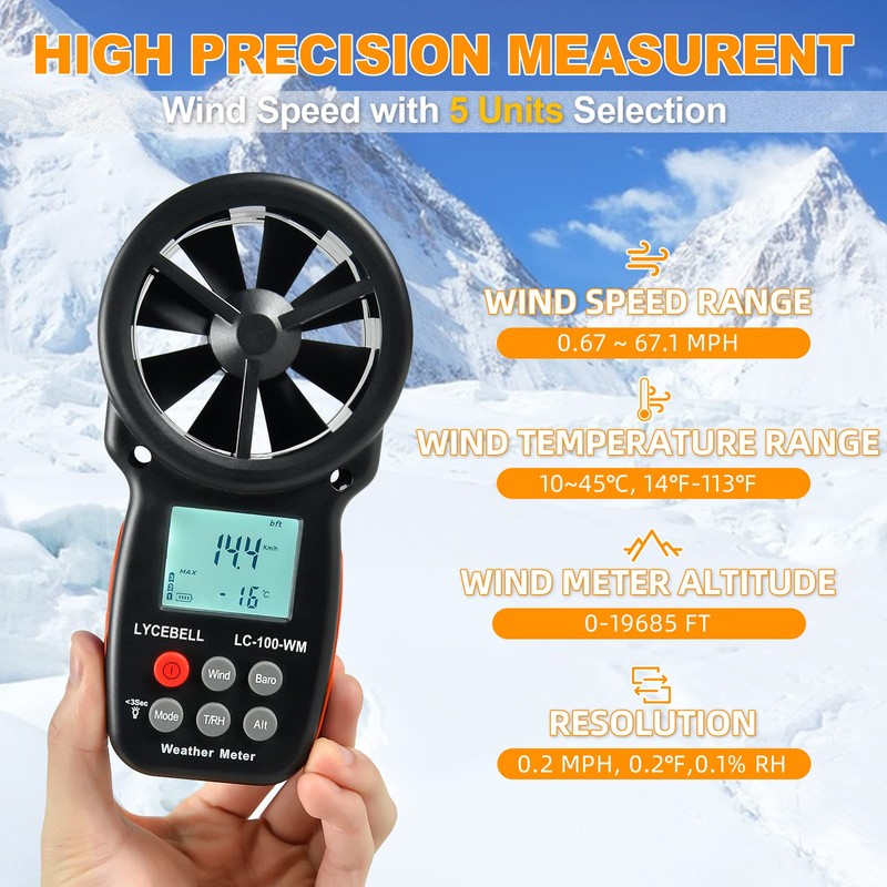 LYCEBELL Digital Wind Gauge, LC-100-WM Digital Anemometer Handheld Wind Meter for Temperature CFM Humidity Altitude, Wind Meter with Backlight for Windsurfing Sailing Drone
