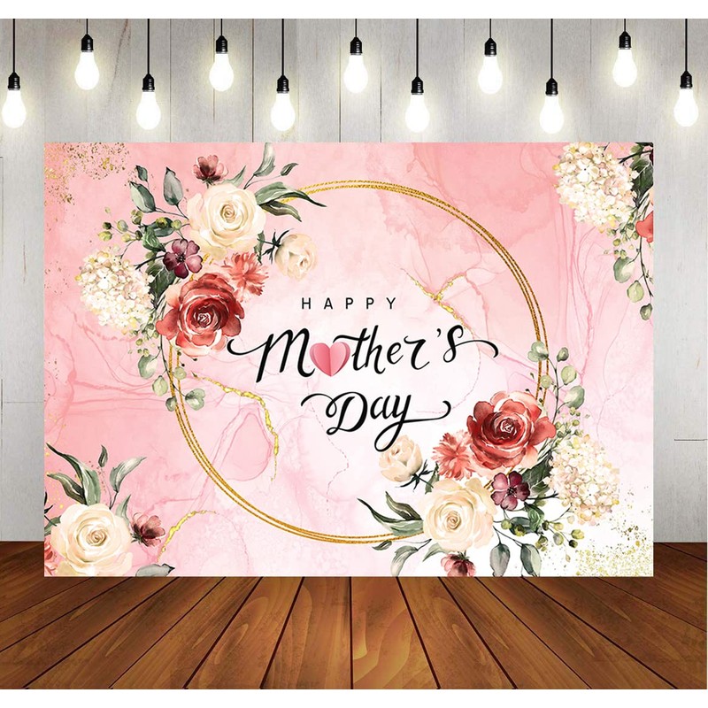 LYCGS 8X6ft Happy Mother's Day Backdrop Pink Flower Mother's Day Photo Background Mother's Day Party Banner Studio Props X-107