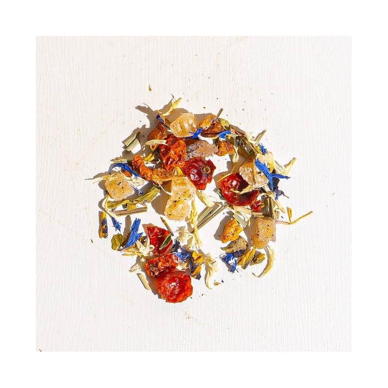 Experience a vibrant blend of pineapple, mango, and apple, infused with fragrant rosehip and zesty lemongrass. Butterfly blue pea flower gives it a stunning blue hue. Enjoy this tisane blend hot or iced for a refreshing escape!