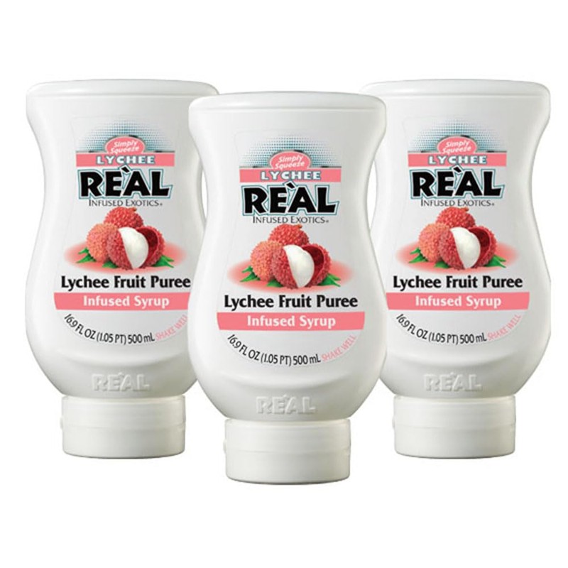Lychee Reàl Infused Exotics, Lychee Fruit Puree Infused Syrup, 16.9 FL OZ Squeezable Bottle (Pack of 3)