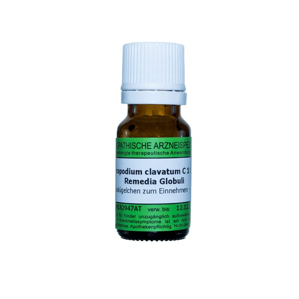 Lycopodium clavatum C1000 (pack size: 10g) is a registered homeopathic medicine and therefore without indication of a therapeutic indication. The globules are size 3 sucrose litters that are lactose and gluten free. This medicine is produced and controlled according to homeopathic and European pharmacopoeia in Austria in GMP quality by REMEDIA Homeopathie GmbH. According to the principles of homeopathy, each treatment is carried out with a medicine individually tailored to the patient and his respective clinical picture. Medicines can cause side effects in addition to effects. For risks and side effects, please consult your doctor or pharmacist.