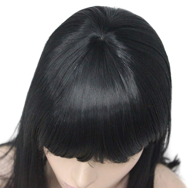 Lydell 14" Long Straight Wig Soft Heat Fiber Hair Cute Neat Bang Under Shoulder Full Wig (Black)