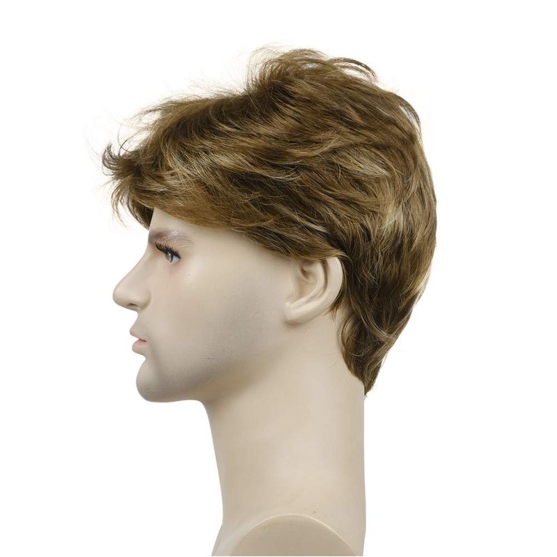 Lydell Short Straight Synthetic Hair Full Wigs with Bangs for Men Golden Brown