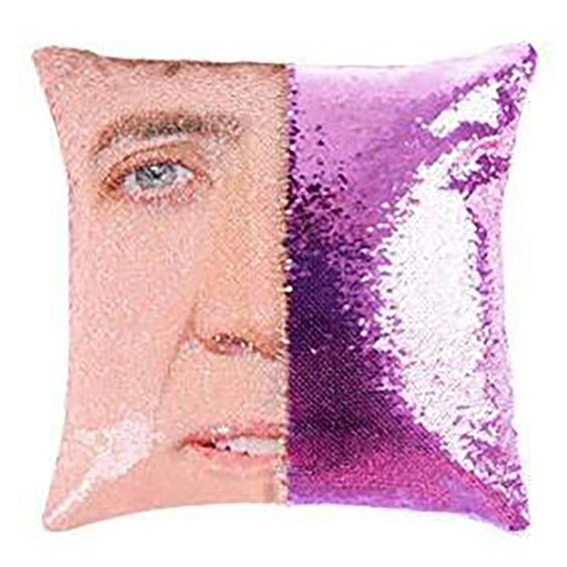 LydeLog Nicolas Sequin Cushion Cover Reversible Funny Gifts Decorative Pillow Case Glitter 16x16 Inch (Purple)