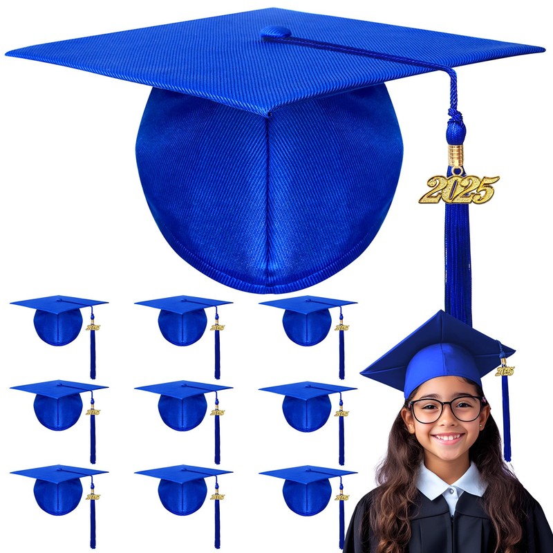 - 🎓【Kids Graduation Caps Bulk】-You will get wholesale 10 packs of royal blue kindergarten graduation caps with tassels and 2025 charms for kids.
