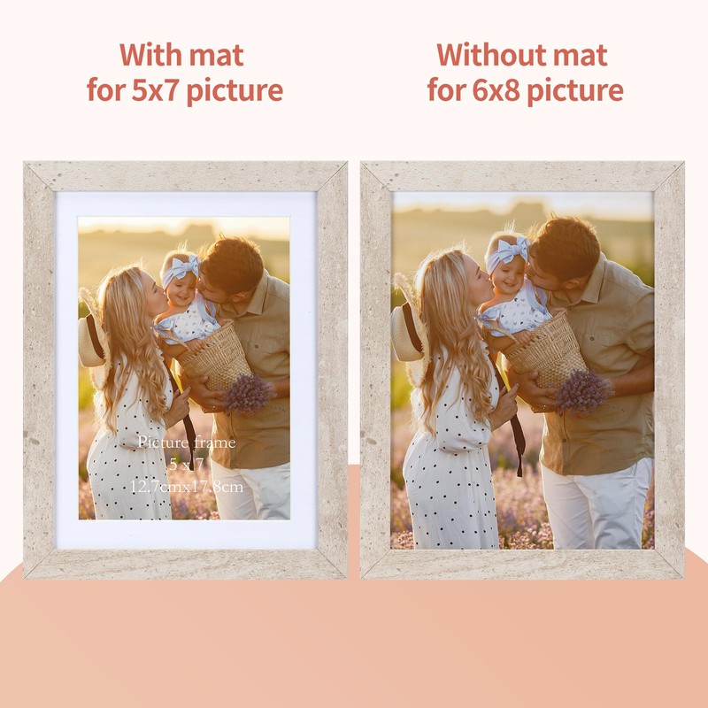 - Easy to use: This beige 5x7 frame with mat comes with hanging hardware and easel back for wall hanging or tabletop display horizontally or vertically.