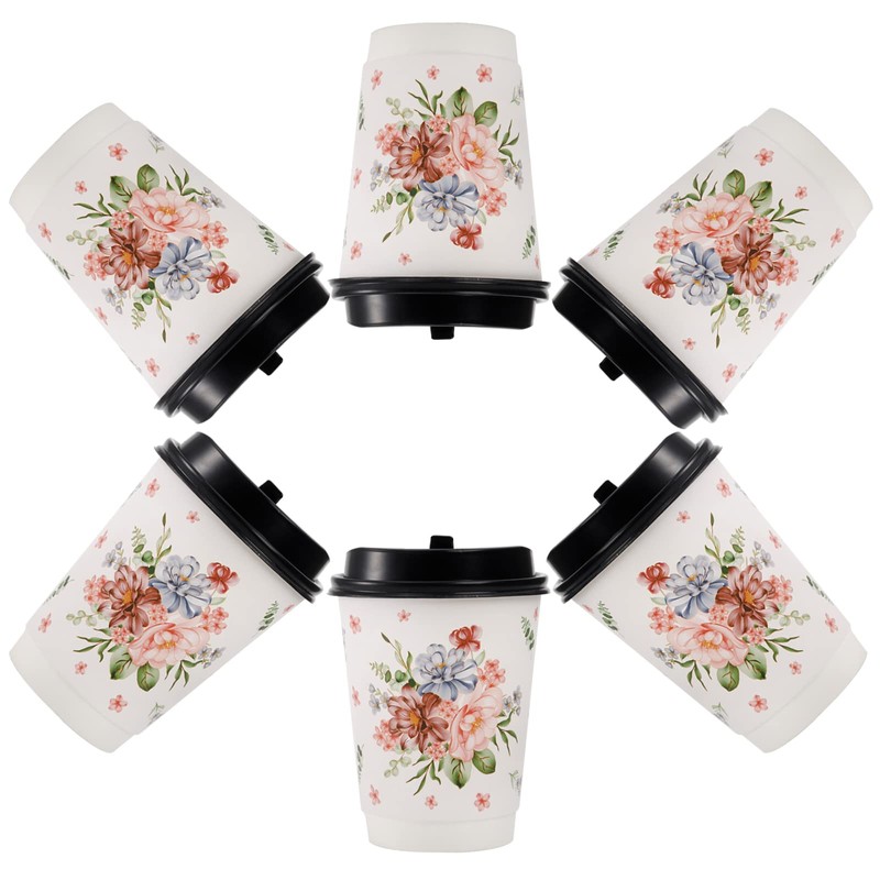 - Floral Theme Design: Entertain Your Guests! Each paper cup is printed with multi-colors flowers and leaves on its surface, definitely adds a sense of elegance to your coffee.