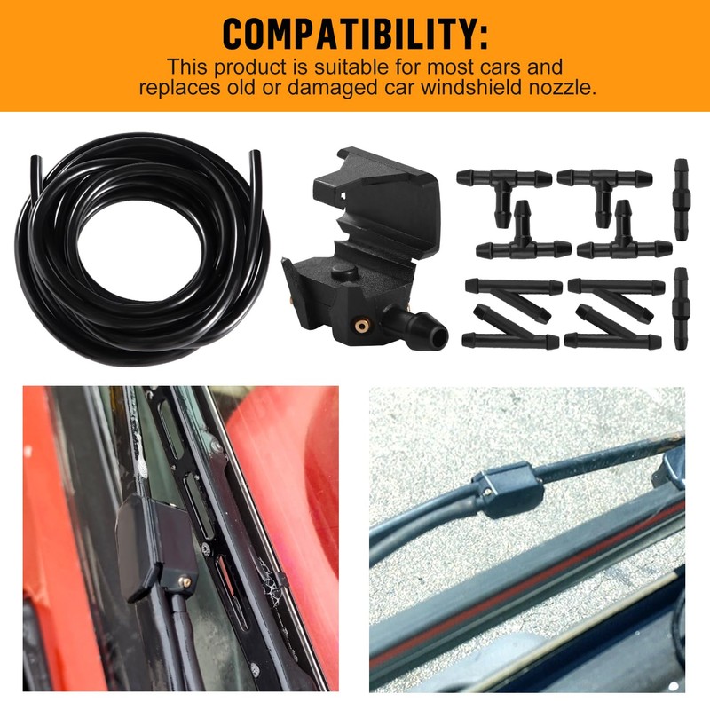 - The package includes: 10 feet windshield washer pipe, 2 windscreen washer nozzles, 10 I hose connectors, 10 Y hose connectors, 10 T hose connectors.