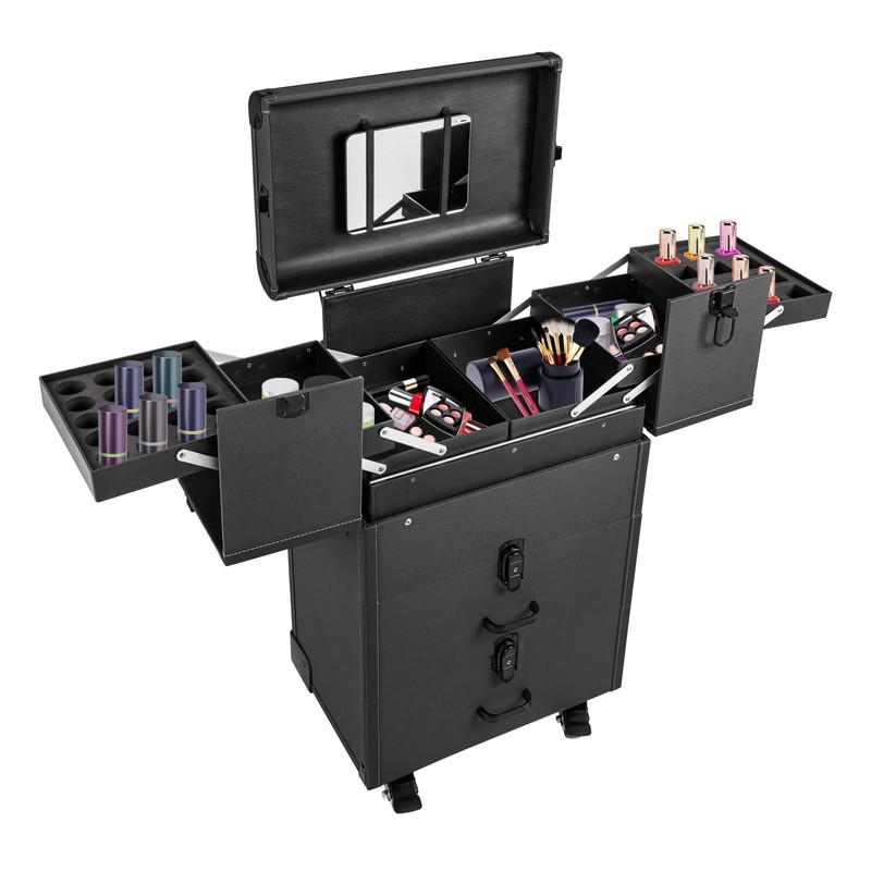 Professional makeup artists, hairdressers, beauticians, manicurists, beauty lovers, etc. can use this product to store cosmetics and makeup tools. It is ideal for makeup contests, wedding makeup scenarios, travel makeup, outdoor shooting, beauty salons, and more.