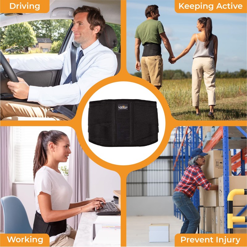 - PROVIDES EFFECTIVE RELIEF AND SUPPORT FOR BACK INJURIES - Our premium adjustable lumbar support belt provides effective lower back support for men and women, stabilising the lower back and providing pain relief. Ideal for injuries from work, lifting or gym strain or to ease back injuries such as sciatica, slipped discs or degenerative disc disease.