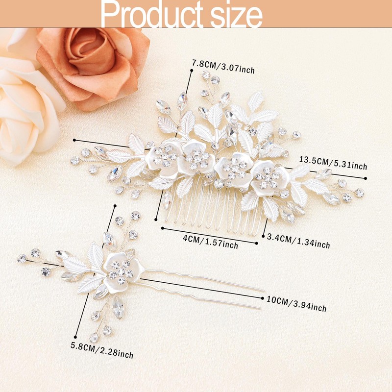 - 【Size】: Wedding hair accessories include 1 bride hair comb measures approximately 13.5 x 7.8cm (5.31 in x 3.07 in) and 2 hairpin, each measures approximately 10 x 5.8cm (3.94 in x 2.28 in) 100% handmade and well crafted.