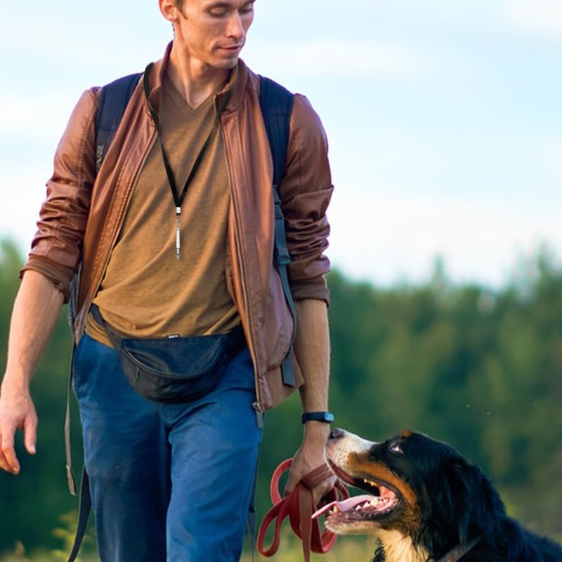 This set is designed to help you teach your pup obedience. The whistle emits a high-frequency sound that dogs can hear, but humans can’t. This sound can be used to stop your pup from barking, make them come to you, or even stop your neighbor’s dog from barking.