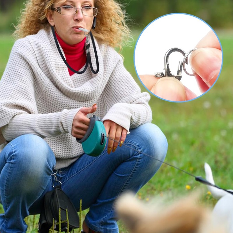 - PURPOSE: This set is designed to help you teach your pup obedience. The whistle emits a high-frequency sound that dogs can hear, but humans can’t. This sound can be used to stop your pup from barking, make them come to you, or even stop your neighbor’s dog from barking.