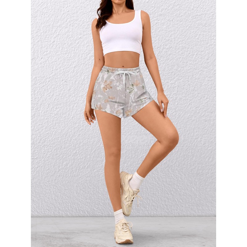 LYHIPSS Camo Shorts Women Comfy Lounge Sweat Shorts Drawstring Maple Leaf Pri...