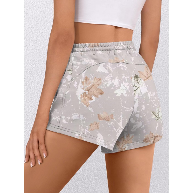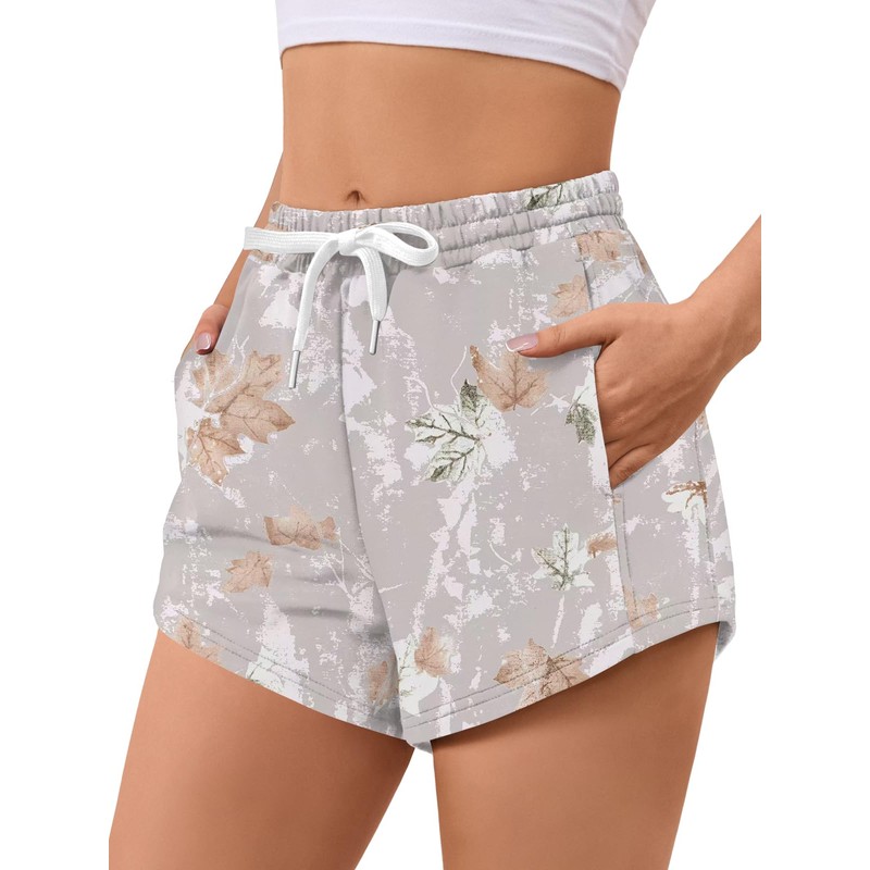 LYHIPSS Camo Shorts Women Comfy Lounge Sweat Shorts Drawstring Maple Leaf Print Casual SweatShorts with Pockets Gray Camo XS
