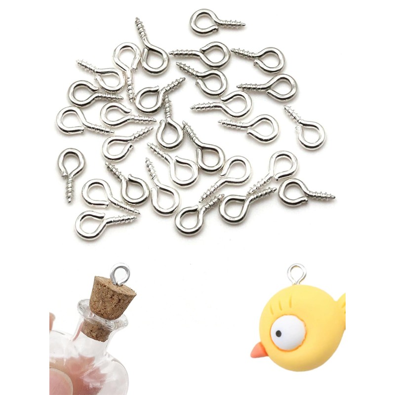 LYHMHAMY Screw Heaton 0.2 x 0.5 inches (6 x 13 mm), Silver, 100 Pieces, Handmade UV Resin Set, Key Chain, Metal Fittings, String Fasteners
