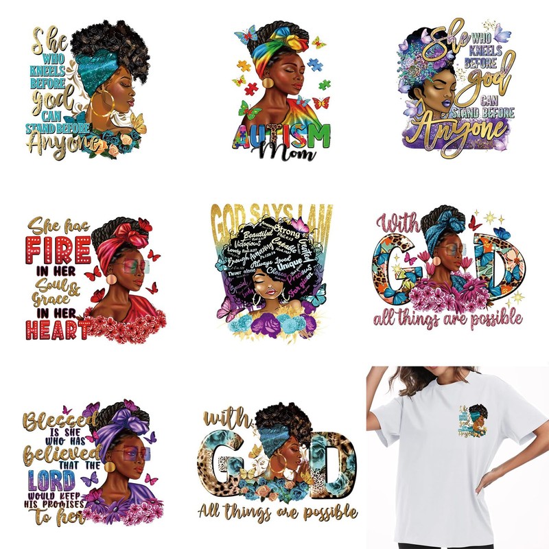 LYINGUO 8PCS Black Girls Iron On Transfers,DTF Transfers Ready to Press for T Shirts Bags Home Decor Crafting Creativity