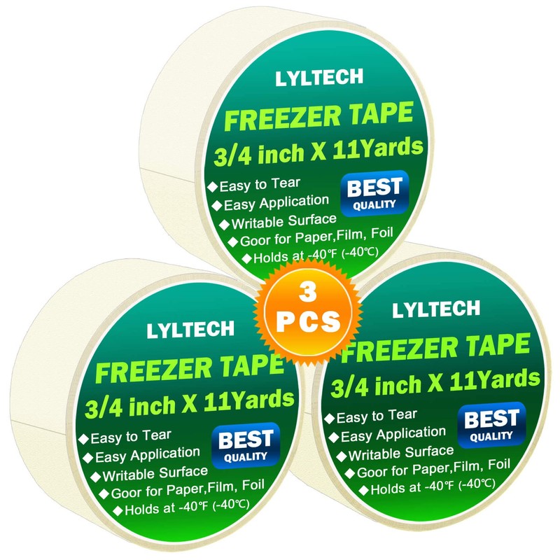 Freezer Tape 3 Rolls,Crepe Paper,Removable Labels,Writable Surface,Easy to Tear, Working Between -40℉ to 150℉ Temperature, 3/4 in x 11 yd