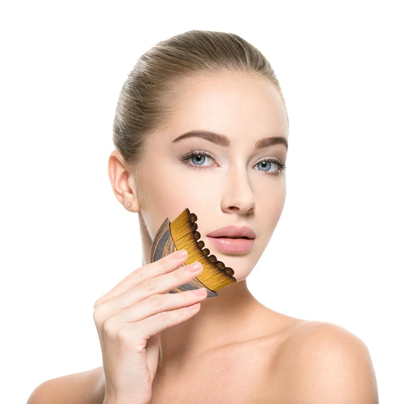 Use this contour face brush during your skincare routine to enhance product absorption, relax muscles, and boost blood flow