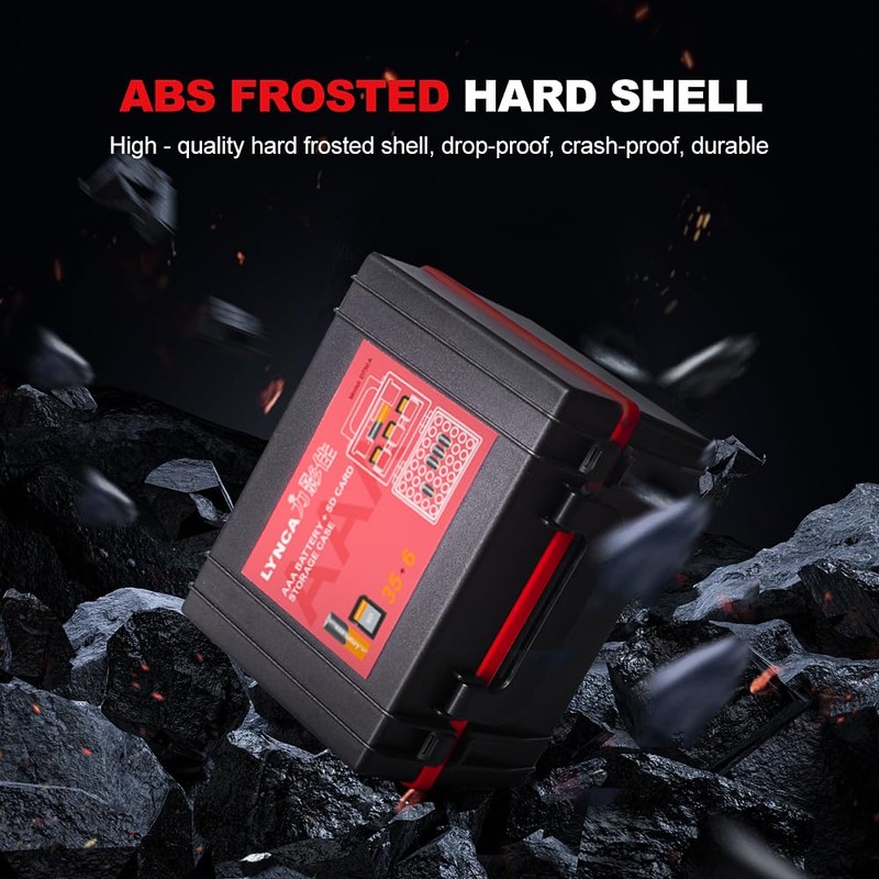 - Safety: Molded rubber interior lining, durable polycarbonate resin exterior with a weather-resistant seal to keep out water, dust, and debris using ABS and thermoplastic rubber material, This battery organizor and SD memory cards case protect your battery and memory card from being damaged