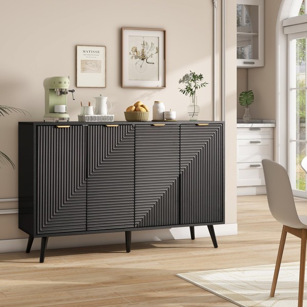 LYNCOHOME Fluted Sideboard Cabinet with Storage, Modern Buffet Cabinet with 4 Doors,Wood Accent Storage for Kitchen Dining Living Room
