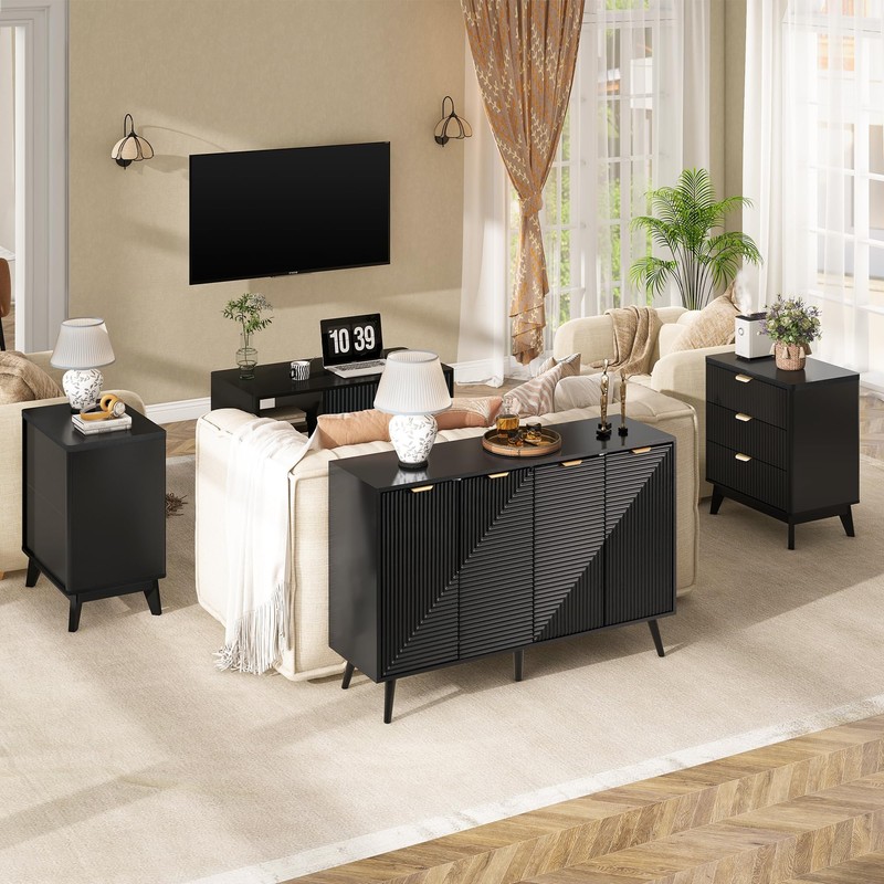 - 【Durable & Secure Build】Crafted from high-quality MDF wood, this fluted sideboard is engineered for long-lasting durability and safety. The rounded corners offer extra protection, helping to prevent accidental bumps and scratches. Featuring elegant metal handles, it combines style with practicality, ensuring a smooth and effortless user experience.