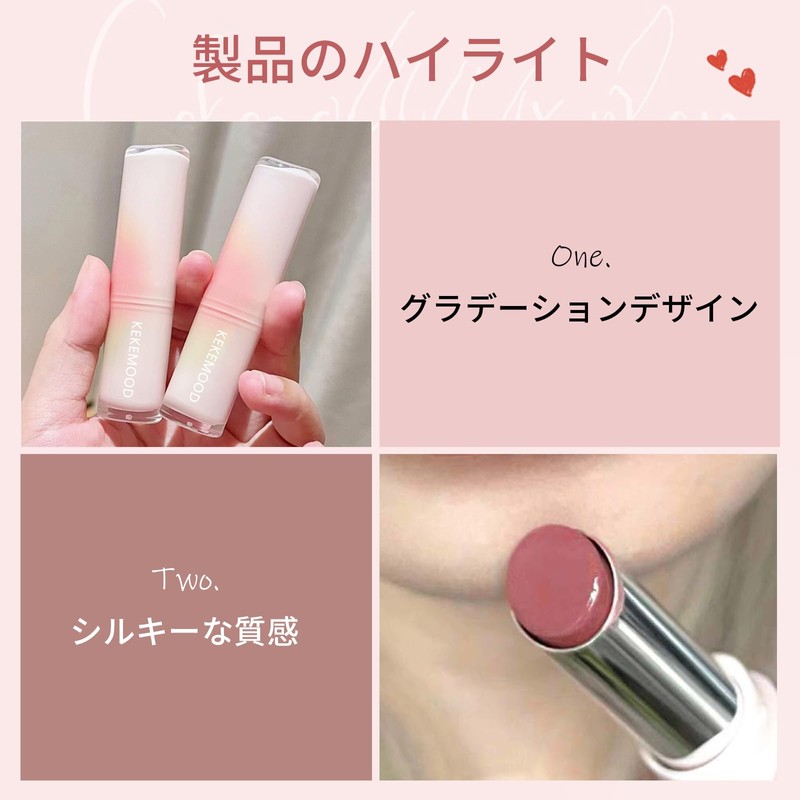 - (24 Hours of Lasting Resistance) This lipstick is made with special film technology that will retain its color even after eating, making it difficult to fall off. Designed to stay put even in the summer, it is resistant to sweat and sebum, and also prevents the mask from sticking. Keeps your lips beautiful from your morning makeup to the night