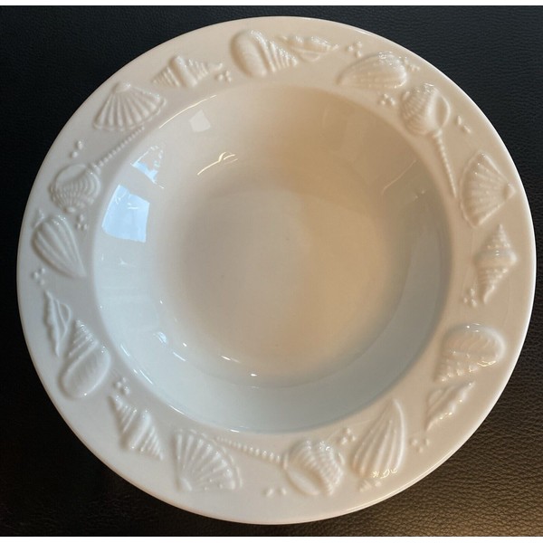 Add some seaside charm to your dinnerware collection with the Seashore By Lynn's China Rim Soup Bowl. This antique round bowl is made of bone china and features a seashell pattern in white color. The handmade bowl has an ash glaze finish and an impressed backstamp. It is a vintage item from 1997.
