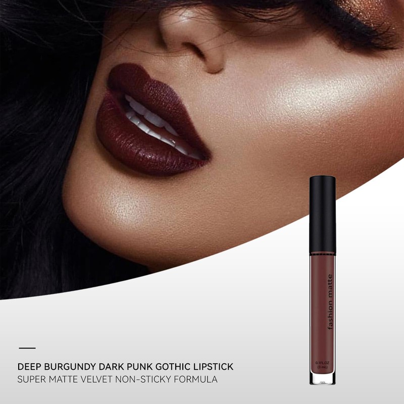 Product description1.This matte lipstick has chocolate touch creamy soft texture and fit for all tones. 2.Matte lipstick is silky and rich.Make your lips look moresmooth and natural plump. 3.Dark brown color Lets you show off your personality. 4.This lipstick has high end mousse texture and matte finish. Just one swipe, the lipstick can give a rich pigment. 5.This lipstick allows you to draw fine lines to outline the perfect lip shape.DirectionsPrep lips by exfoliating and moisturizing, apply lip liner if desired, swipe on lipstick evenly, blot for a matte finish, maintain by avoiding oily foods and touching lips, remove with makeup remover or oil-based cleanser.