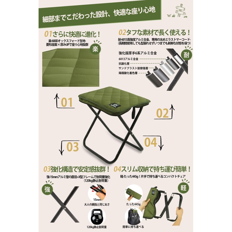 - (600D Oxford + Thick Padding), High-grade Seat with 3 Layers: The seat is made of 600D oxford fabric, built-in cushion (approx. 0.1 inch (3 mm) pearl cotton), and 3 layers of lining. In addition, the diamond stitch prevents its shape and improves its style. A luxurious sitting experience that can be used comfortably while camping