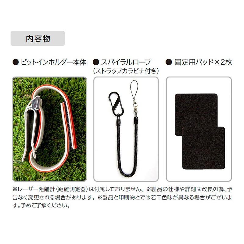 - Contents: Pit in holder body, spiral rope (with strap carabiner), fixing pad x 2 pieces. *Laser distance meter (distance meter) is not included