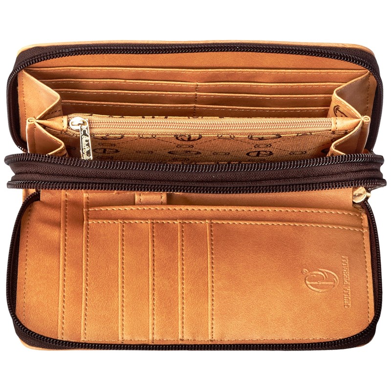 Lyonna Women's Long Format Wallet with Two Zips Black Brown All-Over Pattern Print Approx. 18 x 10.5 x 3.5 cm (W x H x D), Coffee beige