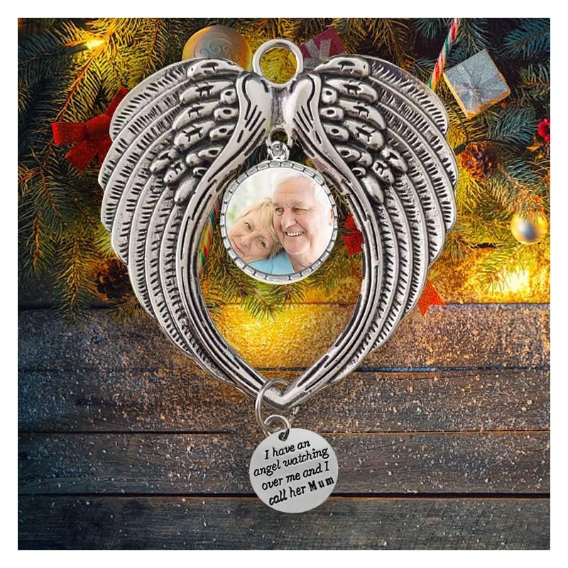LYPER Christmas Memorial Ornaments, Sympathy Gift with Photo Frame, 'I Have an Angel Watching Over Me', Angel Wings Christmas Tree Hanging Pendant for Loss of Loved One (Mum)