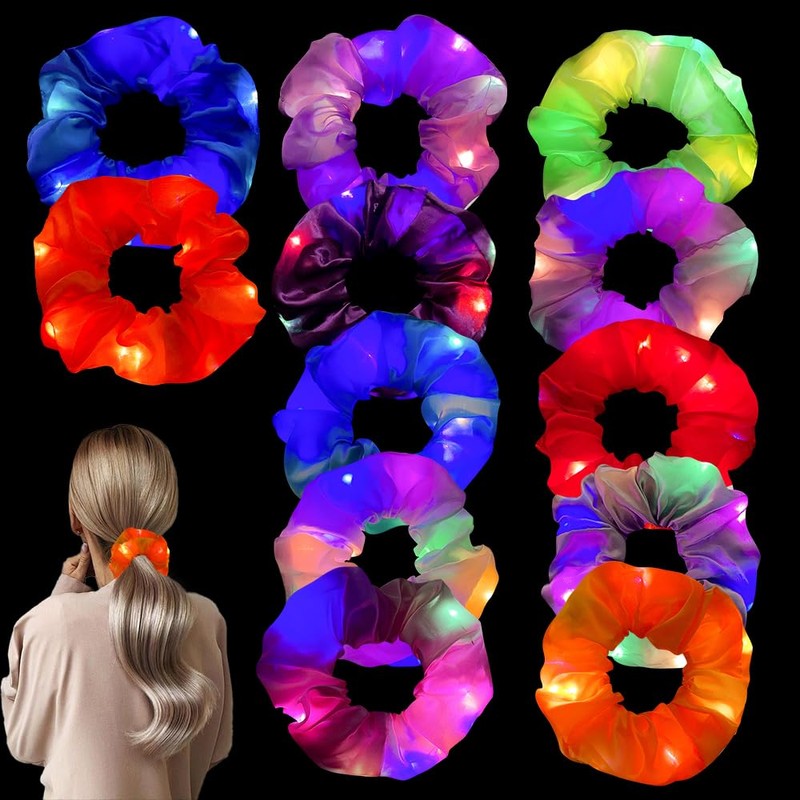 LYPPUL 12PCS Leuchtende Haargummis,Leuchtende Haarbänder,Haarbänder,für Frauen,Mädchen Haarschmuck,Neujahr Party,Karneval,Kostümpartys Hair Glow Weihnachts Haarschmuck,Hair Glow für Party