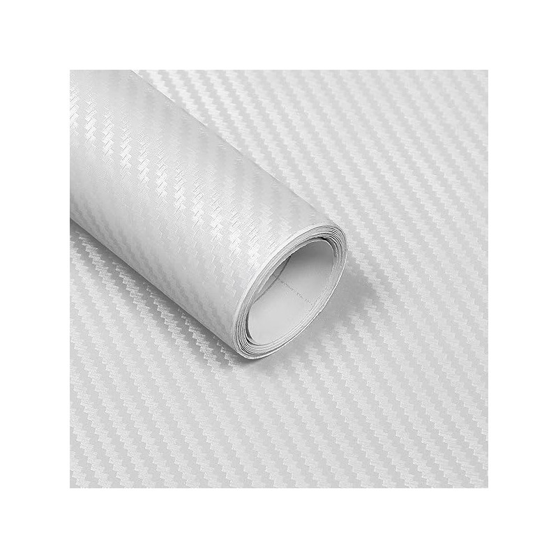 Lypumso 3D Carbon Fiber Vinyl Wrap, White Car Wrap Film Roll with Air-Release Technology for DIY Use, Car Auto Decal Exterior and Interior Wrapping Film, Vehicle Self Adhesive Sticker (1FT x 10FT)