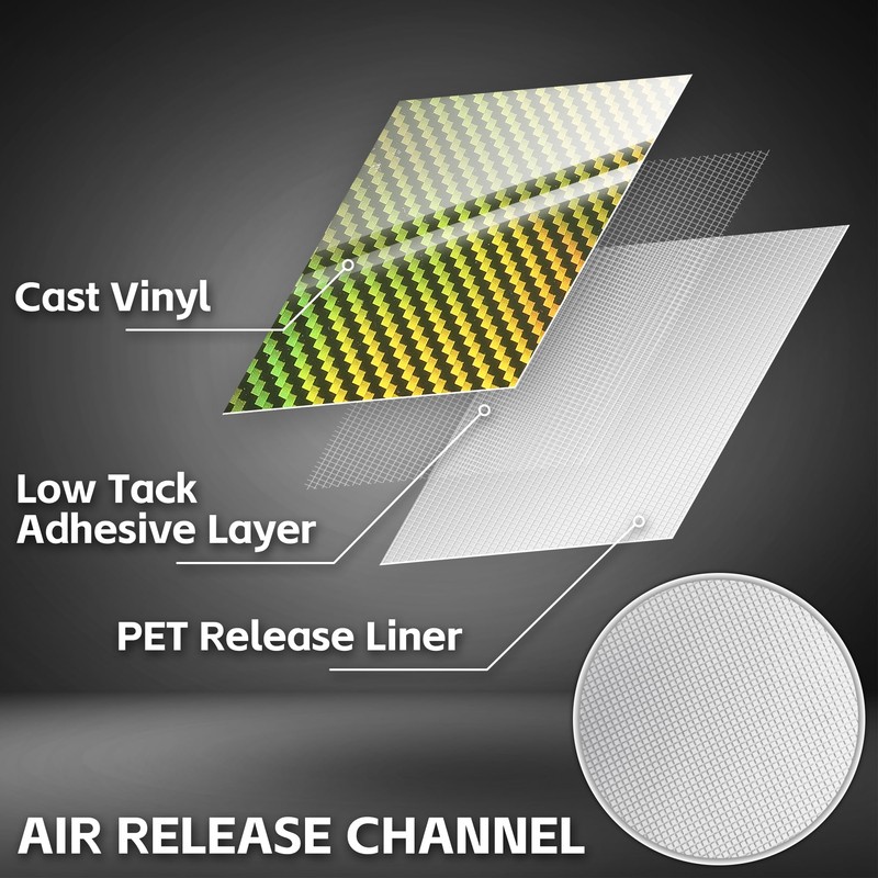 - Tecnología de liberación de aire: la película de vinilo automática adopta tecnología de liberación de aire. El sistema de liberación de aire de alta densidad elimina las burbujas de aire durante el proceso de aplicación de la Mejora la elasticidad y la flexibilidad, lo que le permite soportar una mayor tensión. Autoadhesivo significa que puedes instalarlo tú mismo fácilmente sin pegamentos. Viscosidad de larga duración, pero no deja residuos de pegamento incluso cuando se retira.
