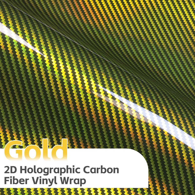 Lypumso - Vinilo holográfico de fibra de carbono 2D, película de vinilo para envolver el coche de color dorado brillante con tecnología de liberación de aire, lámina de calcomanía automático, rollo de
