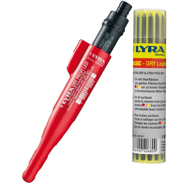 LYRA 101168335_101168336 Dry LED mit Ersatzminen Graphit Deep Hole Marker, red, 13-teiliges Set