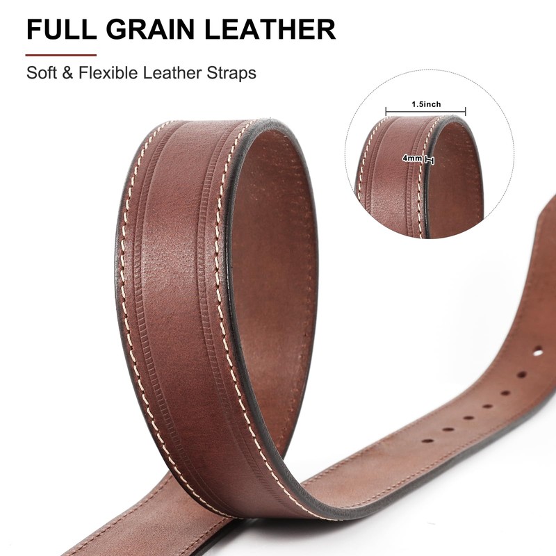 • [PREMIUM LEATHER]: This solid belt is handmade of 100% Italian full-grain leather, durable and lasting quality, will last for years to come. It's a perfect everyday casual mens belt leather. The belt width is 1.5 inch.