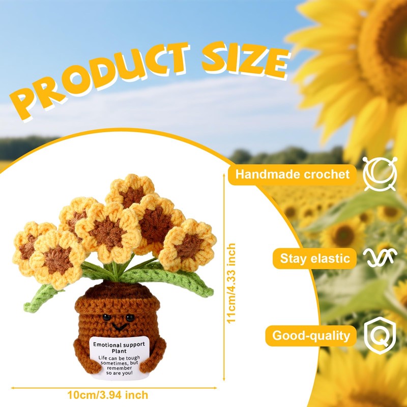 - Inspirierende und Unterstützungspflanze: Unsere lustige positive Sonnenblume ist so süß und die Worte auf der Karte sind inspirierend.Es wird Sie ermutigen, wenn Sie es sehen, und es wird Sie glücklicher machen, wenn Sie traurig sind.Unsere positive gestrickte Sonnenblume wird immer an Ihrer Seite sein.