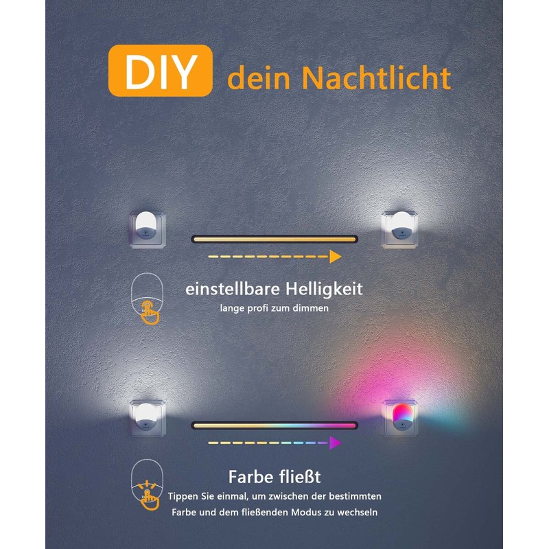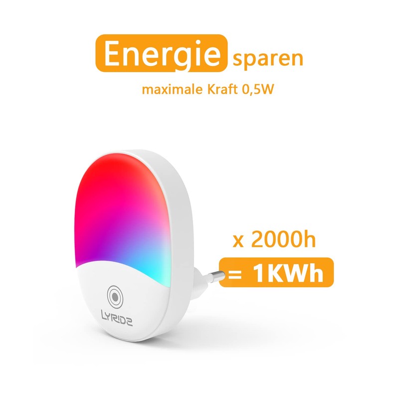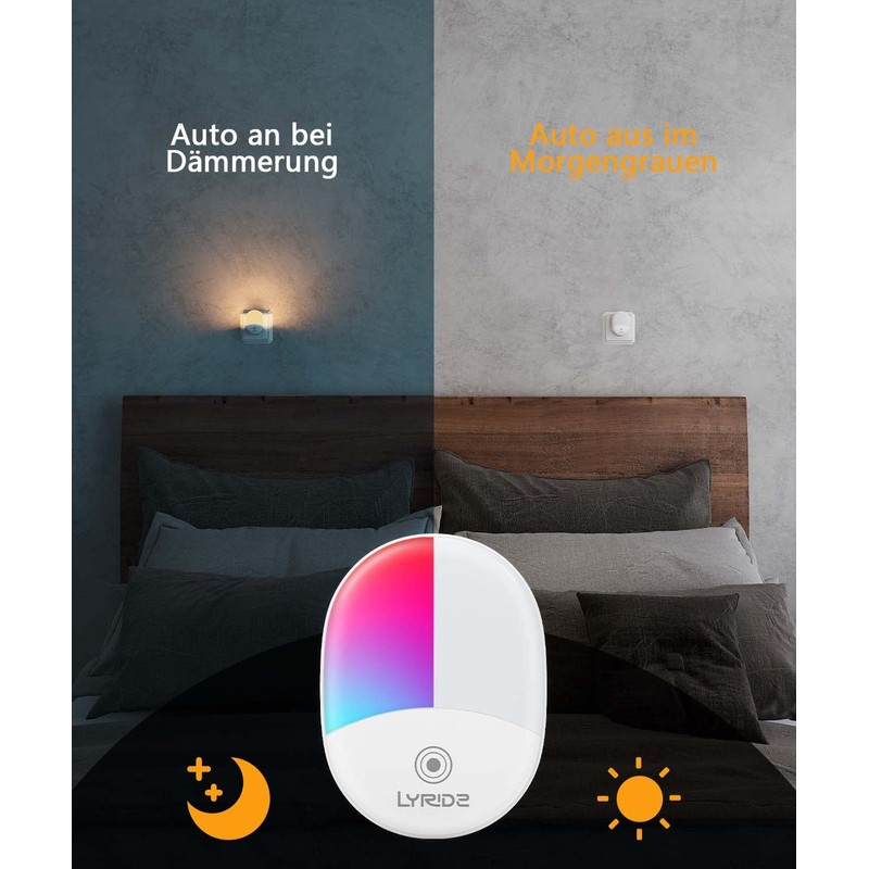 Lyridz Lyridz Nachtlicht Steckdose mit D?mmerungssensor, Dimmbare Farbwechsel RGB LED Leuchte Berhrungssensitives, Baby Kinderzimmer SchlafzimmerToilette Atmosph?re 2Stck