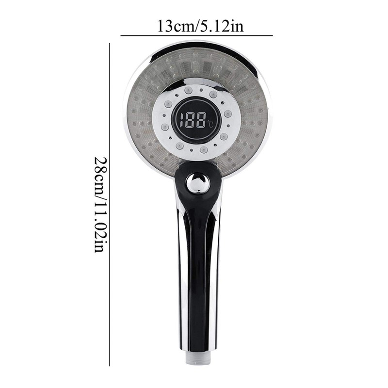 lyrlody LED Hand Shower, Hand Shower with Digital Temperature Display, 3 Colour Changing Shower Head, 3 Jet Modes, Water-Saving Hand Shower