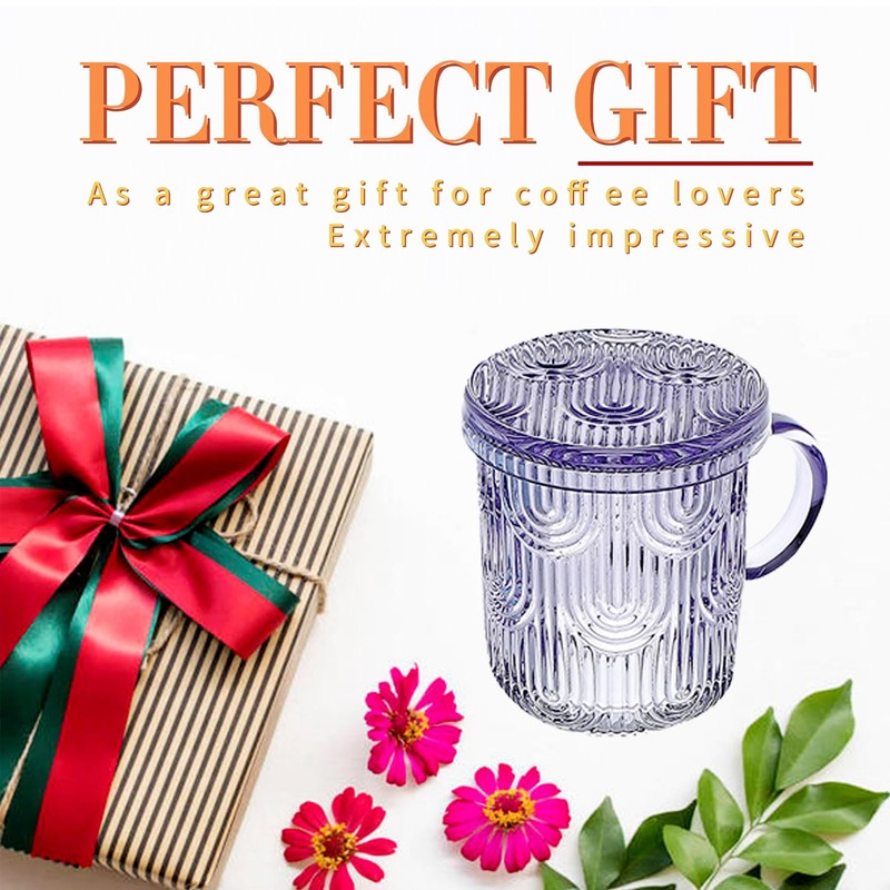 - 【The Perfect Blend of Form and Function】The distinctive textured pattern not only enhances the glass cups aesthetic appeal but also improves grip, providing added reassurance when handling. Paired with matching glass lids, these coffee glasses elevate your drinking experience to extraordinary heights.