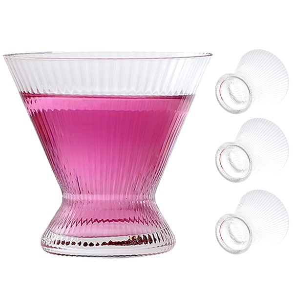 - 【ELEGANT DESIGN】These stemless martini glasses boast a classic vertical stripe design for enhanced durability and a comfortable grip. The elegant shape features a wide opening for easy sipping, a narrowed waist for effortless holding, and a widened base for added stability, preventing spills.
