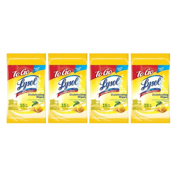 LYSOL Disinfecting Wipes - Lemon & Lime Blossom To-Go Flatpack 15 ct. (Pack of 4)
