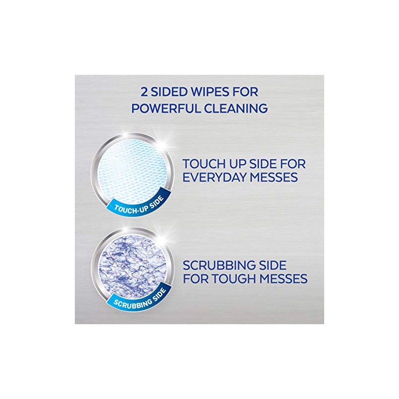 - DOUBLE SIDED CLEANING WIPES FOR TOUGH MESSES: Lysol Dual Action Disinfecting Wipes has one side with a scrubbing texture to clean tough messes, and one with a softer side for every day touch ups.