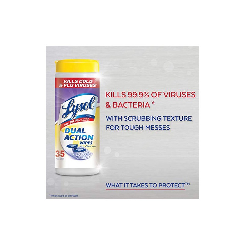 - DISINFECTING SCRUBBING WIPES KILLS 99.9% OF VIRUSES AND BACTERIA: Lysol Dual Action Disinfecting Wipes are tested and proven to kill 99.9% of viruses and bacteria, including 8 cold and flu viruses* (use as directed).