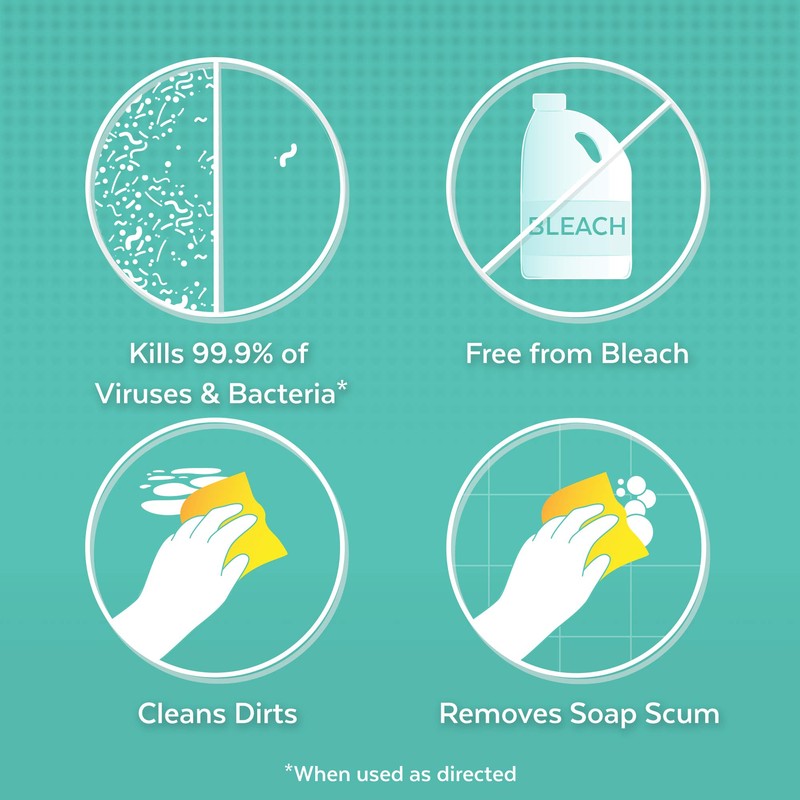 - Where to use: Hard non-porous surfaces including floors, walls, metal surfaces, glazed porcelain, glazed ceramic tile, plastic surfaces, vanity tops, shower stalls, bathtubs, garbage cans, desks, shower doors, toilets and cabinets