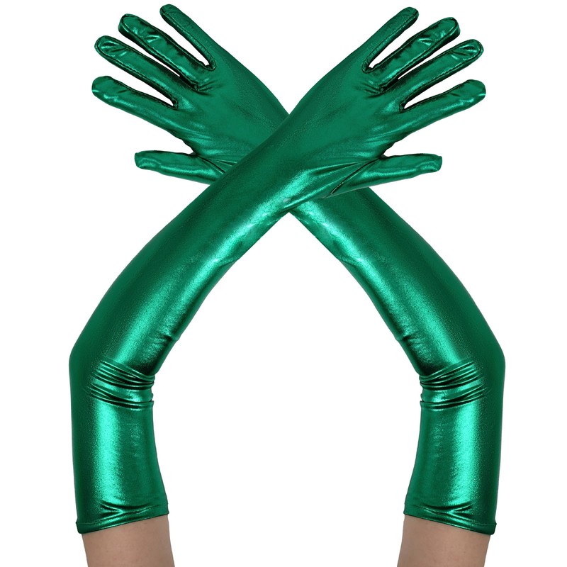 Lystaii Long Shiny Metallic Spandex Glove Elbow Length Opera Gloves 20s Party Cosplay (Green)